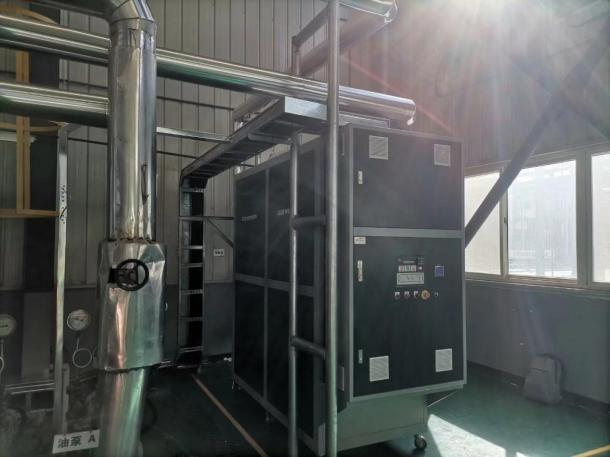 相對于傳統的維持在“能用”水平的溫控方案,奧德一直追求“好用”的溫控方案,本次奧德提供兩臺YGW-270電加熱有機熱載體爐設備進行替換。有機熱載體(導熱油)由電加熱器加熱,系統出口處的溫度傳感器檢測熱載體的溫度。當溫度達到目標值時,電加熱器停止工作并再次啟動,使有機熱載體(導熱油)的溫度保持恒定,滿足精確控溫的需要。
